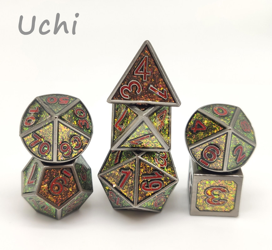 সাতটি তীক্ষ্ণ ধারের বহুমুখী পাশার সম্পূর্ণ সেট, হাতে ঢেলে দেওয়া, পালিশ করা এবং অসাধারণ সূক্ষ্মতার জন্য বালি করা। হাতে তৈরি, হাতে-বালি, হাতে পালিশ করা তীক্ষ্ণ-ধারযুক্ত পাশা। সাতটি বহুহেড্রাল ডাইস। হাতে তৈরি এবং হাতে খোদাই করা। জন্য প্রস্তাবিত ডাইস ট্রেতে ব্যবহার করুন।